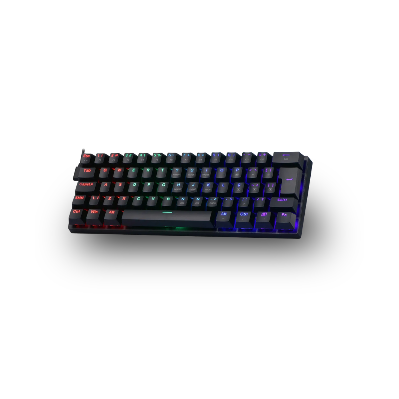 Com apenas 61 teclas, o formato 60% otimiza sua mesa, oferecendo mais liberdade para movimentos do mouse — perfeito para jogos FPS e setups minimalistas. Além disso, o cabo USB Tipo-C destacável facilita o transporte e aumenta a durabilidade.